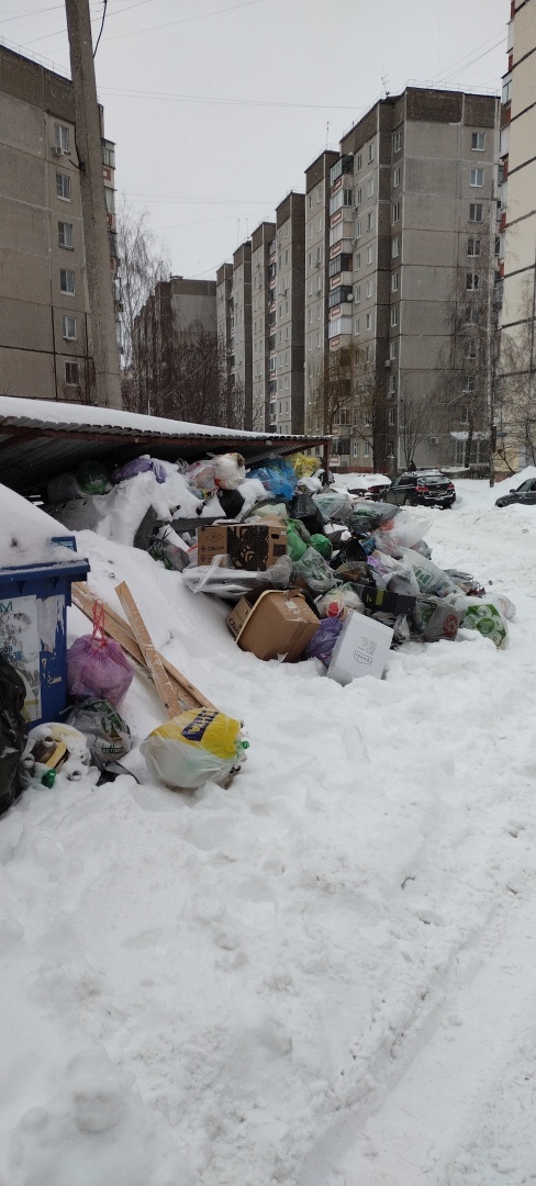 Машины возле подъезда также завалены белым снегом, с трудом можно подобраться и к мусорным ящикам.