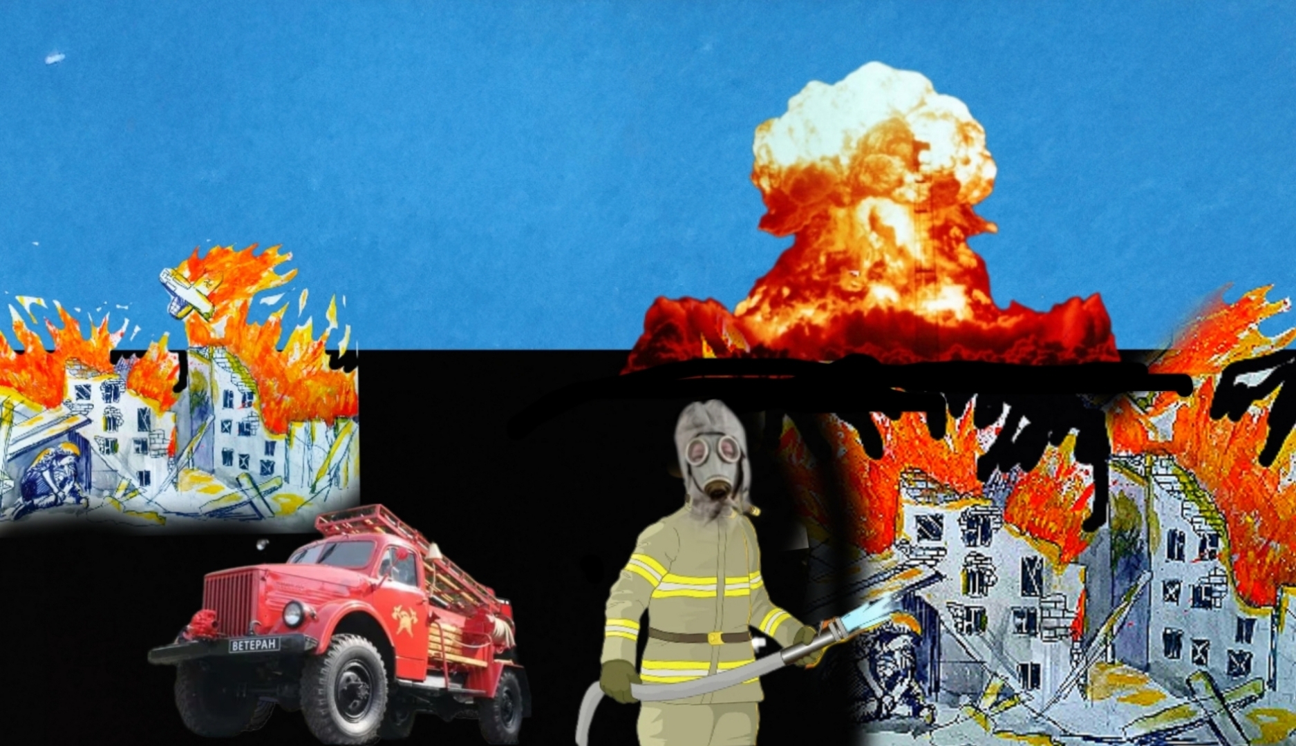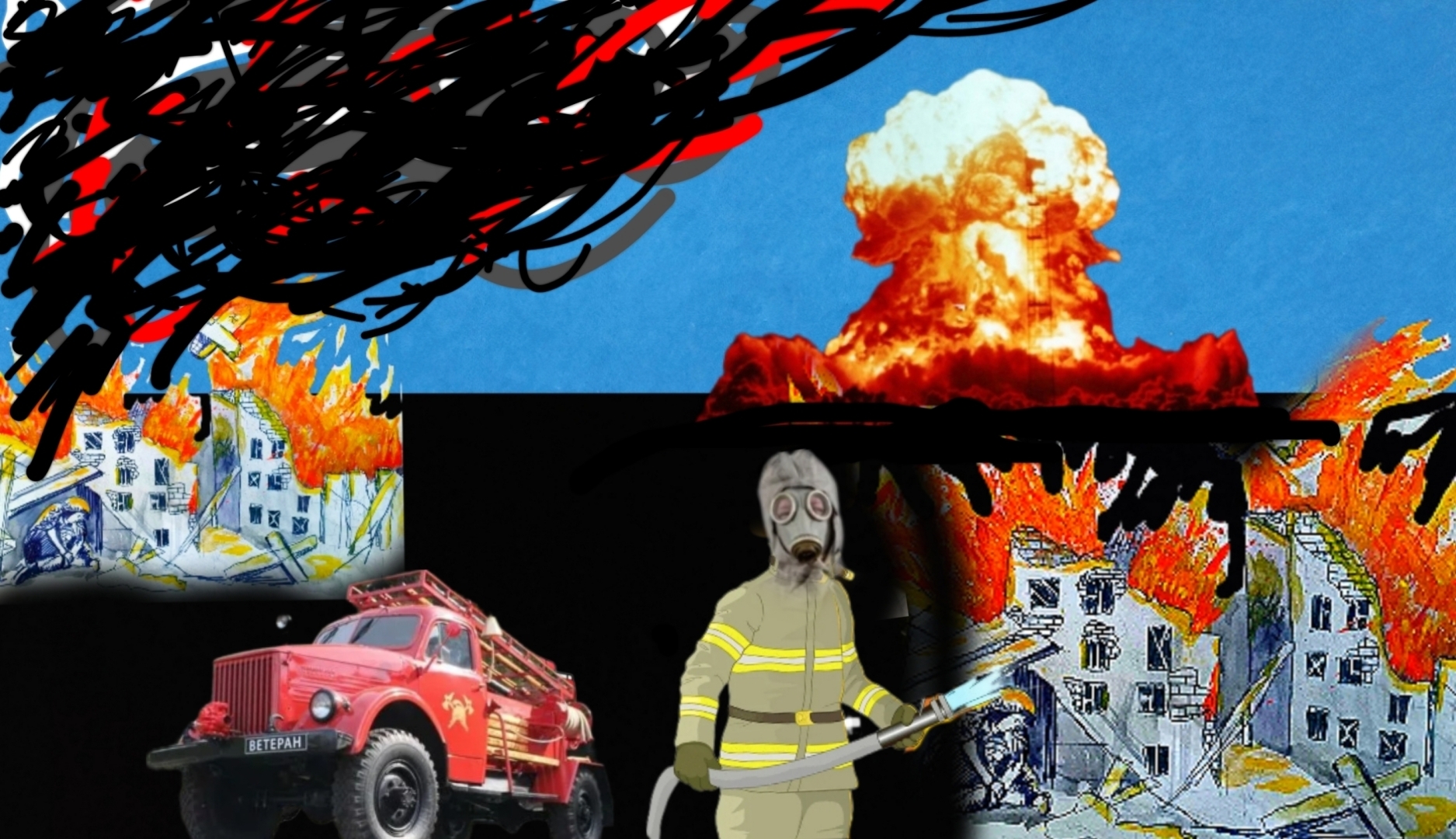 Я не долго думая взял кисть и закрасил голубое небо черной краской изображая дым от пожаришь!