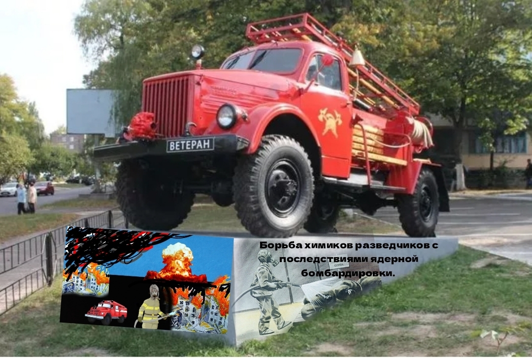 На постаменте стояла пожарная машина, а в основании была наша картина: