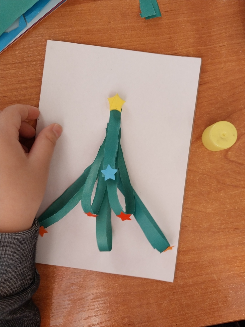 К сожалению, эта фотография вышла размазанной, делала открытку год назад в подарок близкому. Нарисовала ёлочку акварелью, украсила красными бумажными полосками, в уголок прилепила счастливый билетик в Новый год😁