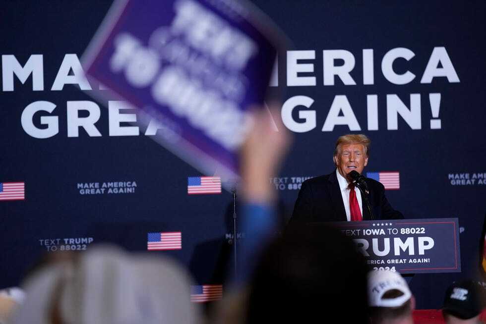 Бывший президент Дональд Трамп выступает во время митинга в среду, 13 декабря 2023 года, в Коралвилле, штат Айова. (AP Photo/Чарли Найбергалл)