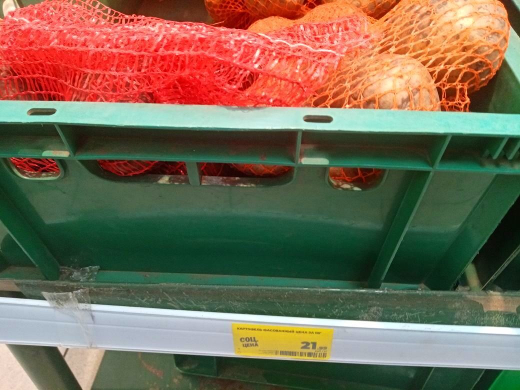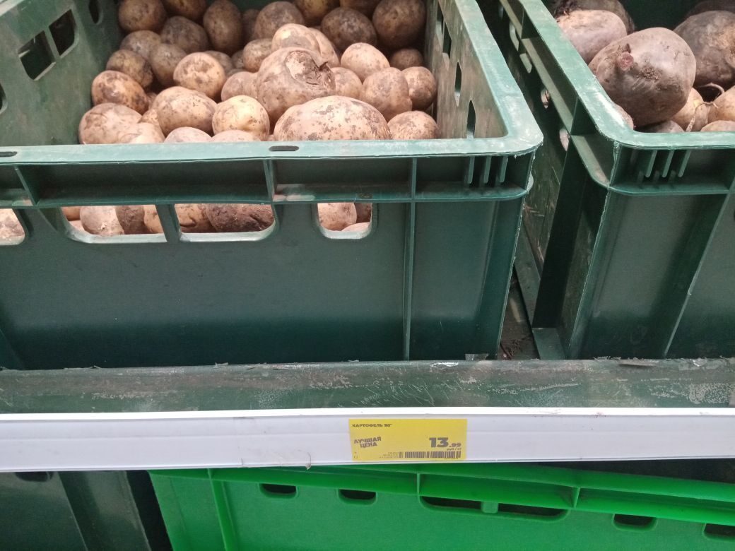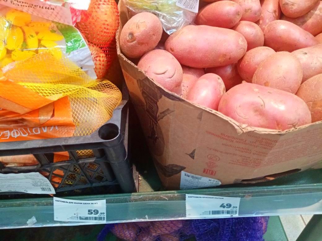 Что касается овощей, то сначала обратила внимание на картофель. (Мы, правда, зимой его не покупаем, заготовили впрок и спустили в подвал в гараже.) В "Магните цены на картошку разные: от 13 до 59 руб.