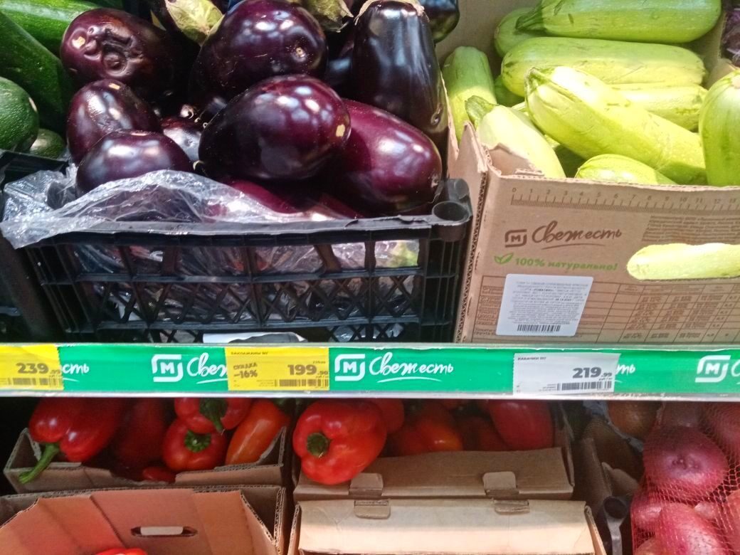 Баклажаны, благодаря скидке, оказались дешевле кабачков: