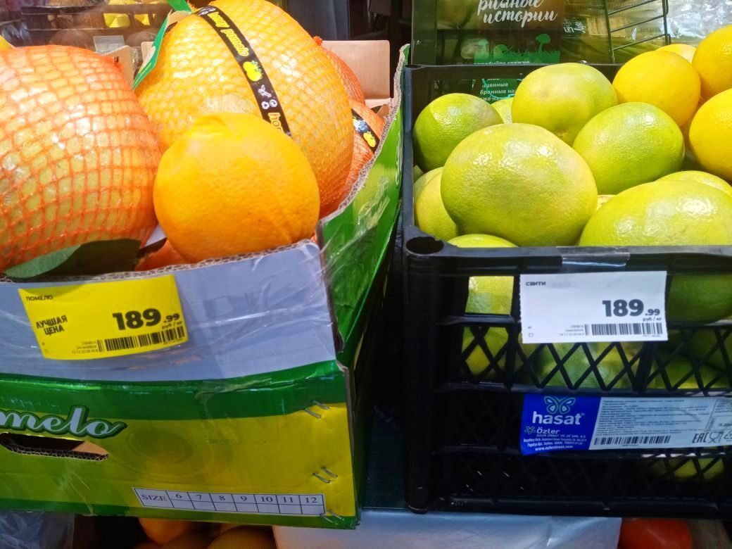 Свити и помело неделю назад стоили чуть больше 200 рублей, сейчас цену немного снизили.