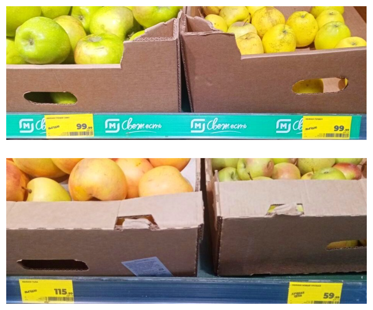 Яблоки можно купить от 59 до 115 руб. за кг всяких расцветок: зелёные, жёлтые, красные, пёстрые.