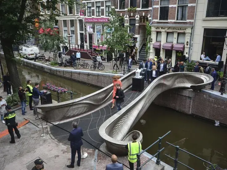 Этот мост в самом сердце Амстердама является знаковым свидетельством 3D-печати металлических конструкций. он был напечатан на канале в разрезе. он демонстрирует, как 3D-печать может создавать как функциональные, так и художественные конструкции.