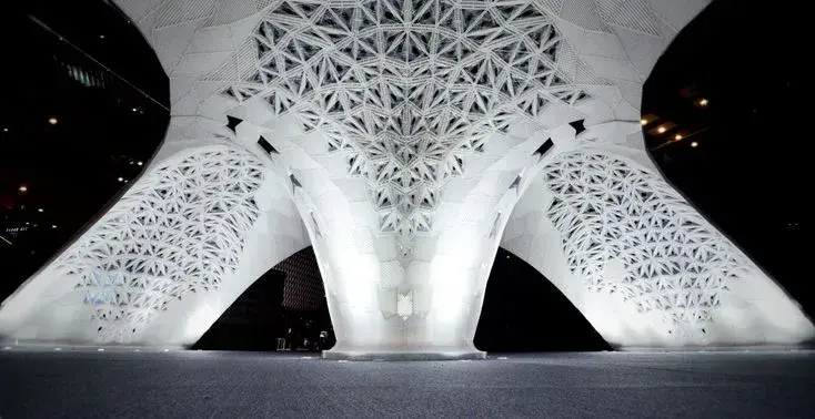 Этот стенд является ярким примером того, как 3D-печать в металлических конструкциях может сочетать в себе искусство, технологии и экологичность. Он отличается сложными решетчатыми конструкциями, которые было бы сложно создать с использованием традиционных методов строительства. В проекте подчеркивается сочетание эстетики и технологий в архитектуре.