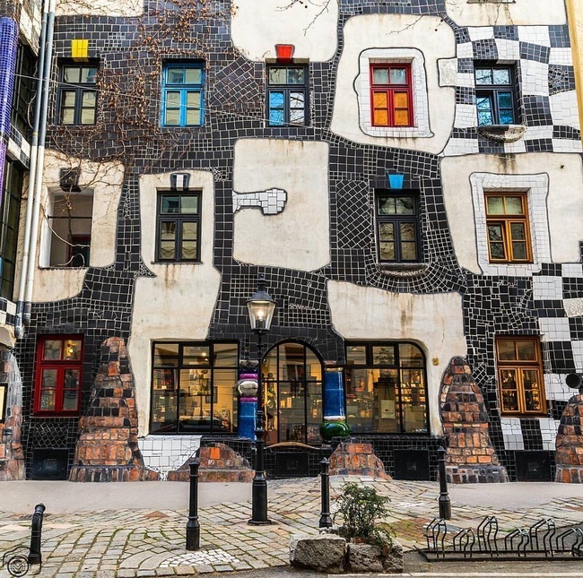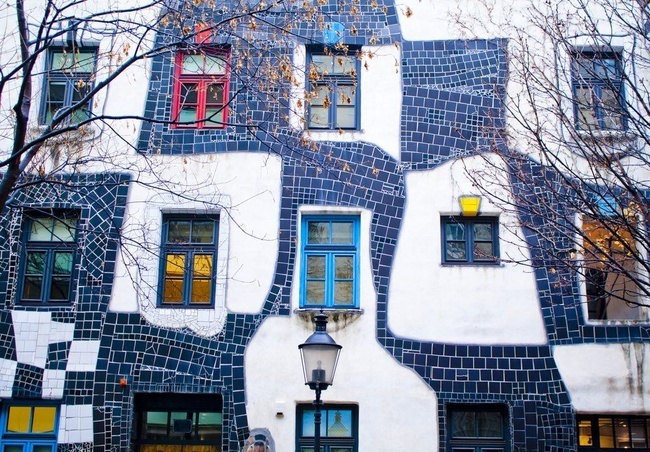 Первой его работой архитектора стал яркий цветной дом с хаотичными окнами разного размера, где деревья растут прямо в квартирах, крыша с травой и кустарниками. Вознаграждение за проект дома Хундертвассер не взыл. Ему достаточно было того, что на этом месте не построили ничего уродливого.