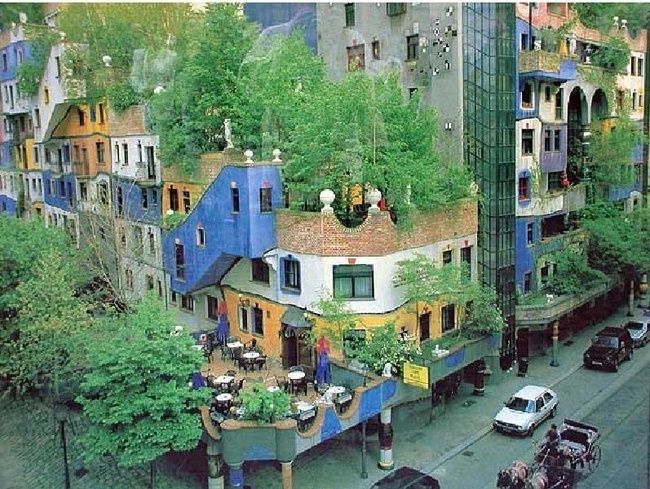 По просьбе мэра города, Хундертвассера приглашали на проекты и строительство необычных домов и внутренних дворов Вены.