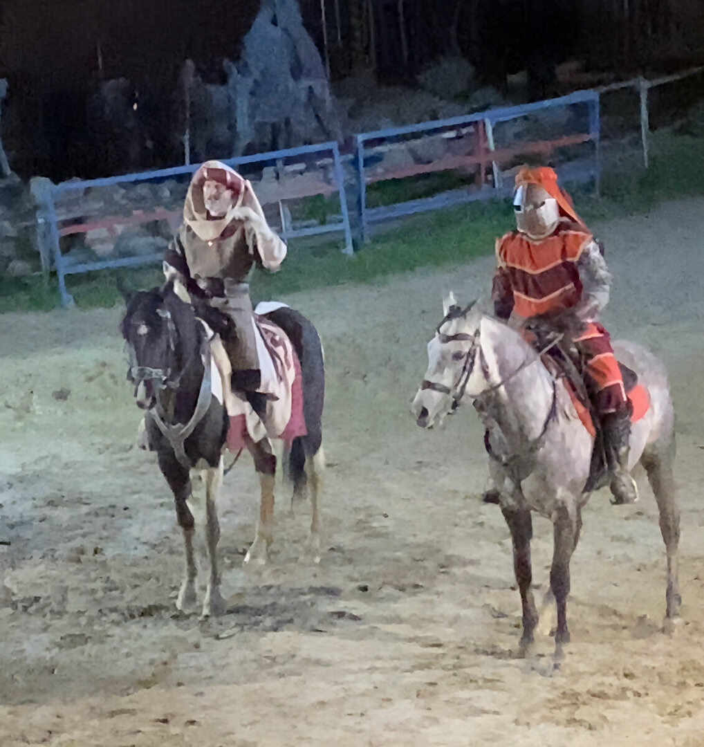 А после ужина...мы пошли смотреть настоящее рыцарское шоу! Проходило оно во дворе замка. Правда, для нас, гостей, вход был 200р, для проживающих в отеле - бесплатно. Настоящие рыцари на лошадях, трюкачи, сражались за честь своей дамы, которую кстати, выбирали среди зрителей.