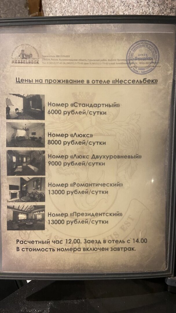 Но что-то я отвлеклась. В Москве, у нас есть друзья, тоже семейная пара. Их на 2 дня отправили в нашу область, в командировку. Люди они не бедные, сами, заранее забронировали номер в замке Нессельбек. По их словам, это "мелочь". А мы, местные "нищеброды", всю жизнь мечтали там побывать, но то времени нет, то жаба душит, т. к. все цены в подобных заведениях рассчитаны на туриста.
