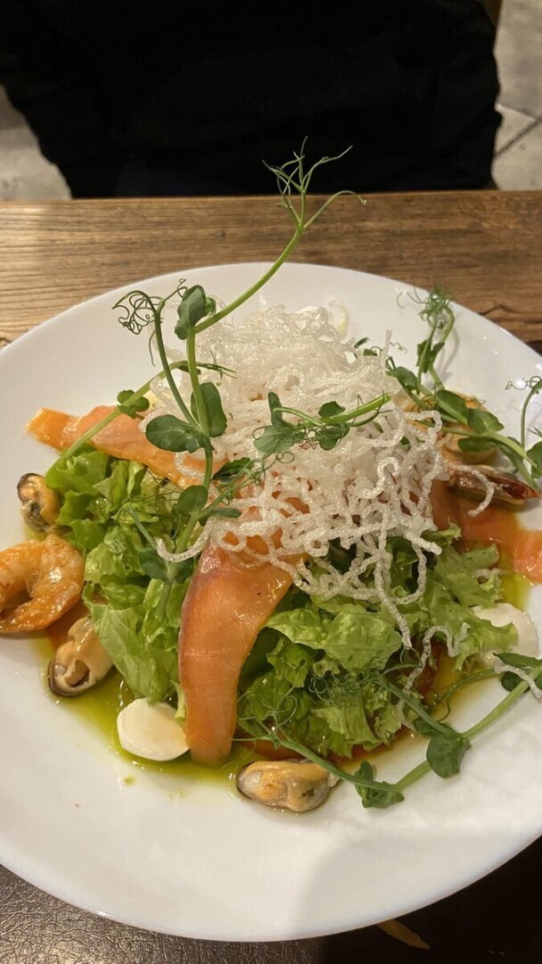 Нас было 4 человека, двое из которых любят много и вкусно покушать. Не удивляйтесь количеству блюд. В ресторане, я всегда стараюсь выбирать блюда из морепродуктов, край-то рыбный. Салат "Морское изобилие", судак Балтийский и "По-старопольски" прямо на сковородочке, мидии, уха с расстегаем. Мужчины налегали на курицу Кордон Блю. Кстати, рыбные блюда были всё же вкуснее, чем курица.