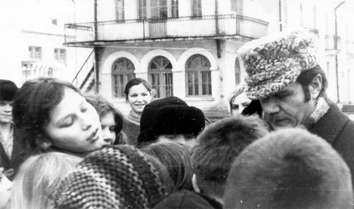 Сюда приезжали известные люди, чтобы встретиться с учащимися. Вот фото, где в гостях у детей известный актёр Михаил Пуговкин.