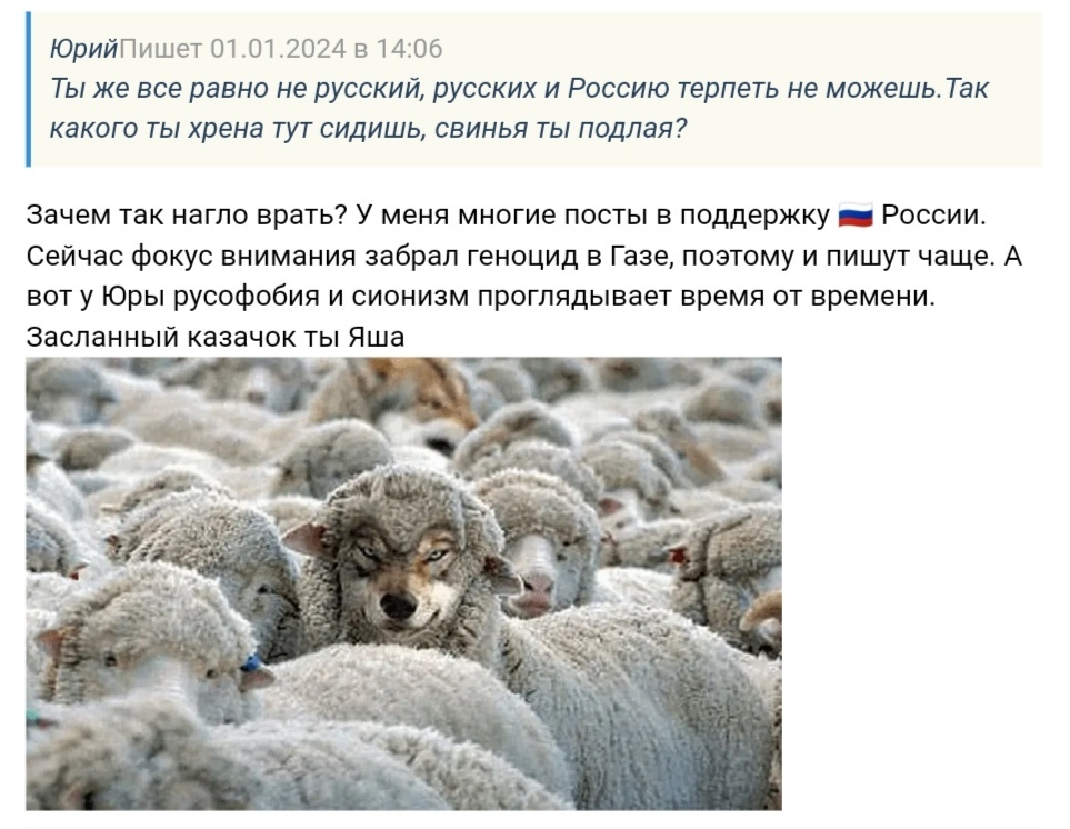 Зачем так нагло врать? У меня многие посты в поддержку 🇷🇺 России. Сейчас фокус внимания забрал геноцид в Газе, поэтому и пишут чаще. А вот у Юры русофобия и сионизм проглядывает время от времени. Засланный казачок ты Яша