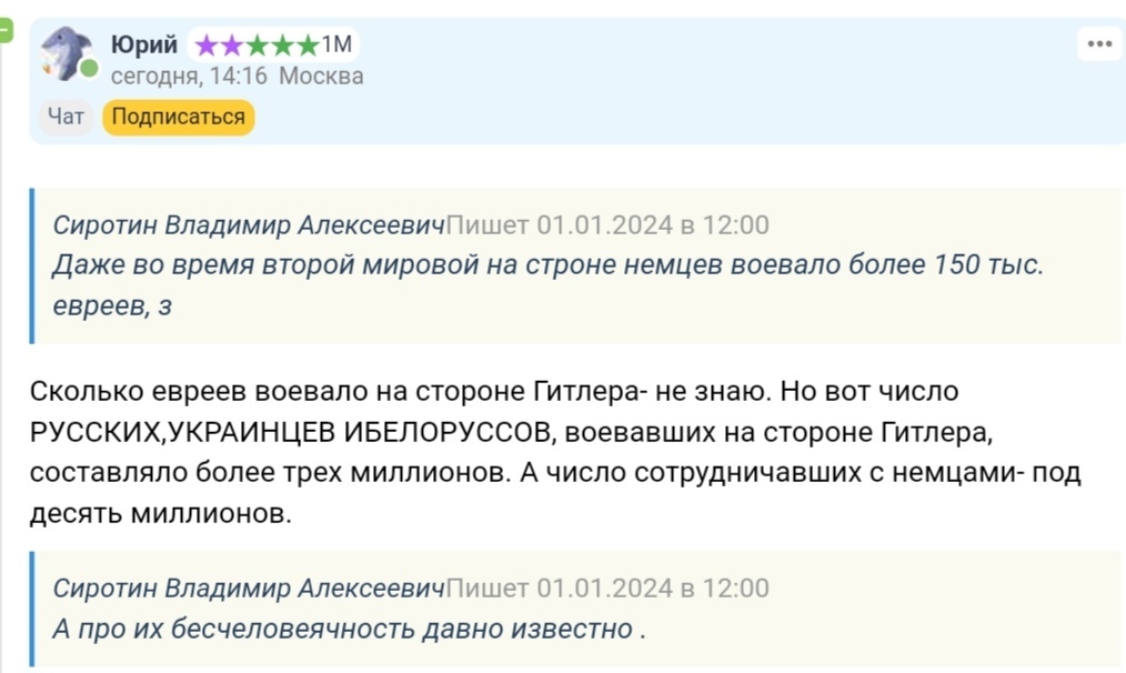 То что Юра с дельфином на аве, пропагандируеет человеконенавистничество и русофобию мы здесь поняли . Скорее всего он укр- полукровка. 😄 Только он забывает один факт. Что все мусульманские республики в СССР воевали против фашистов. В частности мои деды , героически положили жизни, за освобождение родины ☝️