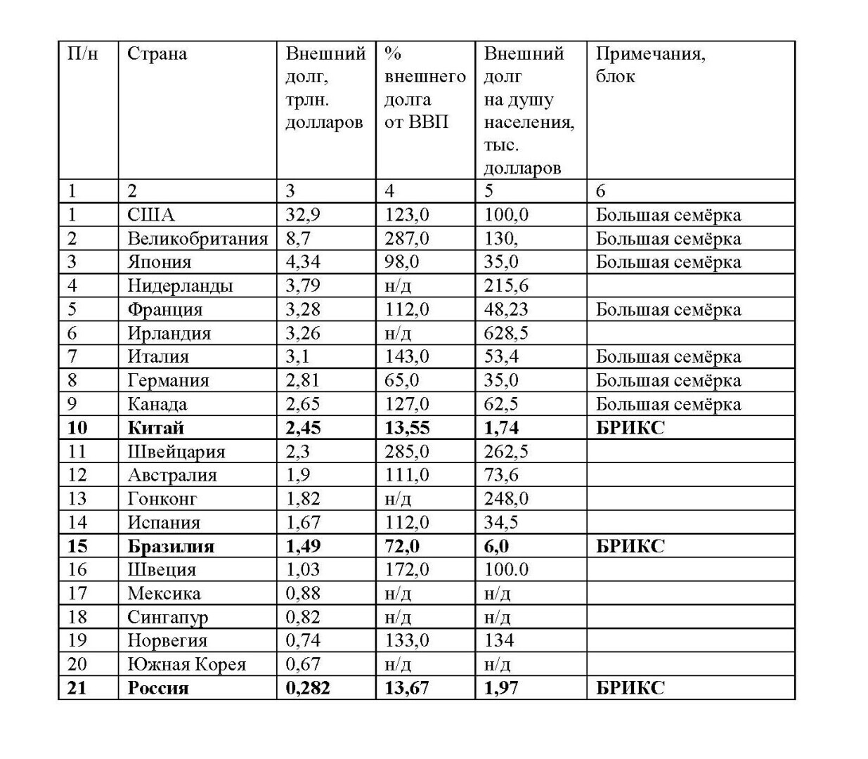 Страны БРИКС тоже имеют долги, все страны мира имеют долги в той или иной мере, так устроена мировая экономика. Но гораздо меньше и способны их выплатить.