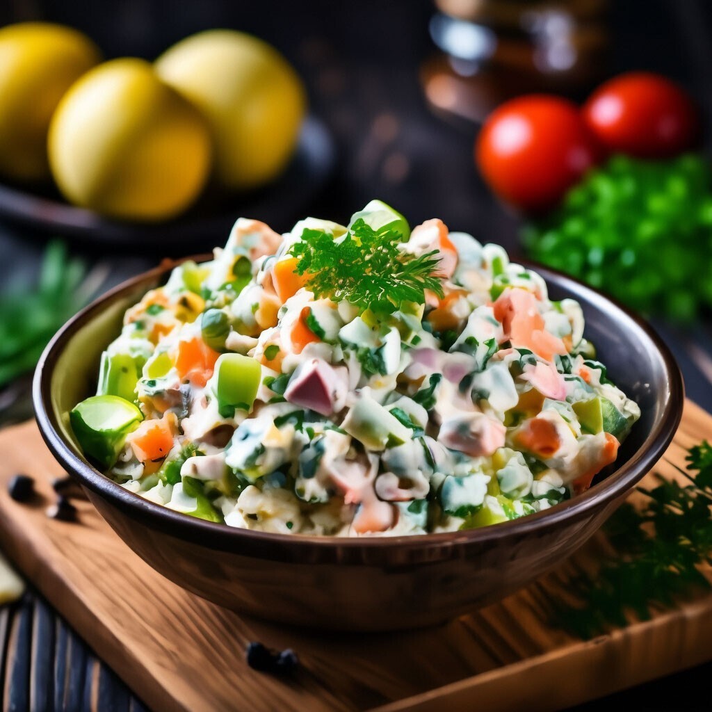 Вот и все! Ваш классический салат "оливье" готов к подаче. Наслаждайтесь вкусом этого праздничного блюда вместе с близкими и дорогими вам людьми.