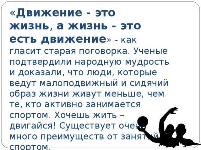 Надо жить - пока есть такая возможность, а как говорится: "Движение - это ЖИЗНЬ"