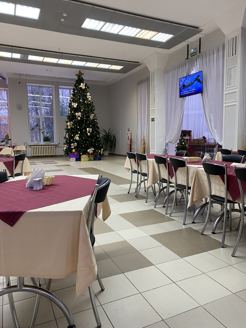 На проходной санатория работали прекрасные люди и в назначенное время они пропустили нас во внутрь. Мы должны были пройти в здание столовой для оформления: