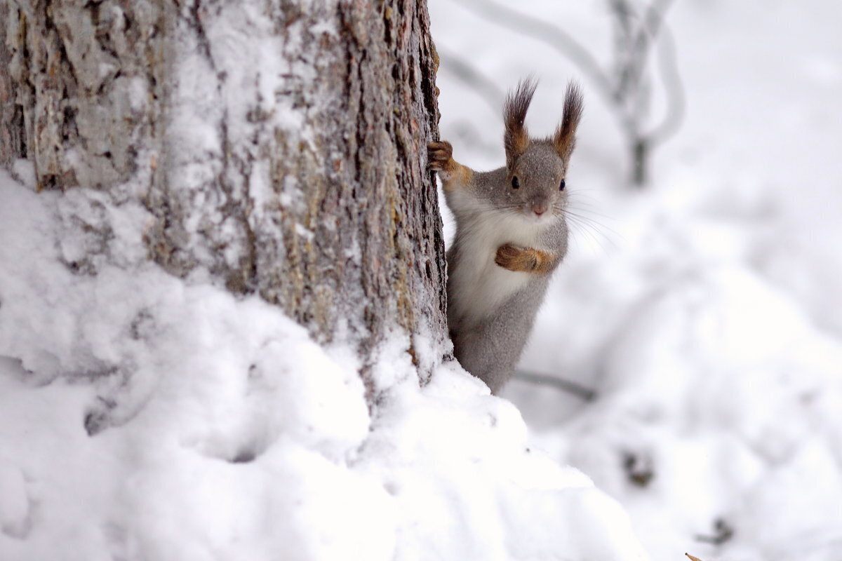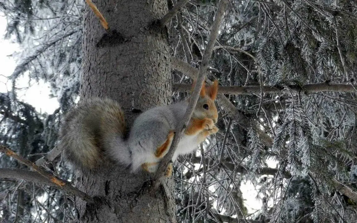 И снова, в этом же месте с неба на нас посыпались легкие комочки снега. Оказывается, всю дорогу нас сопровождала белочка.
