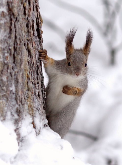 И снова, в этом же месте с неба на нас посыпались легкие комочки снега. Оказывается, всю дорогу нас сопровождала белочка.