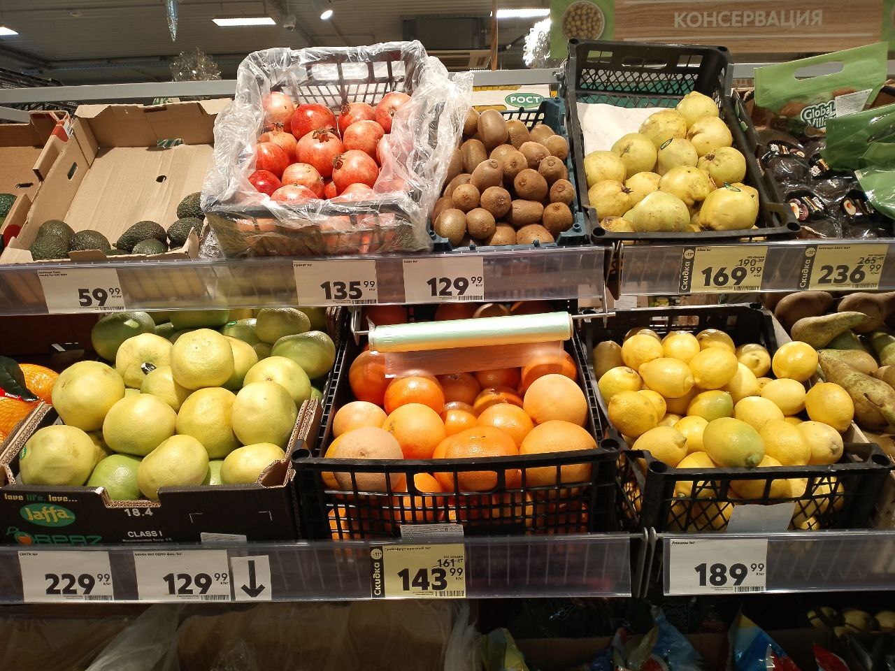 Другие фрукты тоже не отстают от бананов, кроме гранат и лимонов. Гранаты в другом месте покупала за 175 рублей, а тут то оказывается всего 135, а вот лимоны я наоборот в другом месте покупала за 100р, а тут аж 189 рублей, разница очевидна. Что-то тут в пятёрочке конечно можно купить по дешевле, чем в других магазинах, но далеко не всё.