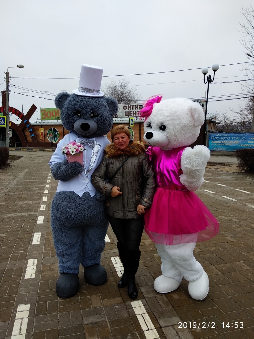 В 2019 году (ниже на фото) я шла на встречу с друзьями. Хоть день рождения и прошел, но не получилось встретиться с друзьями раньше, перенесли встречу. И вот иду я по улице, грустная, а мне навстречу эти два прелестных мишки. Останавливают и задают вопрос: Почему такая грустная? А я им отвечаю, потому что день рождения! Что тут началось... Они мне и сплясали, и обняли, и мы сфотографировались и я счастливая побежала на встречу. В кафе - мои эмоции зашкаливали!