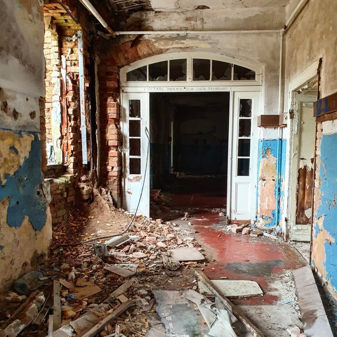 Только мы подъехали к лечебнице, как гурьбой высыпала местная детвора, предлагая провести интереснейшую экскурсию всего за 100р! Мы дали деньги, но от услуг отказались. Хотелось побродить в одиночестве. Территория условно закрыта, но можно пройти через окна дальнего КПП. Мы этого не знали, подсказали те самые мальчишки за 100р, а то так и бродили бы вокруг. Территория там гигантская! Также, я читала, что один из корпусов разрешили специально разрушить ради съёмок какого-то военного фильма! Объект культурного наследия! Нет слов!