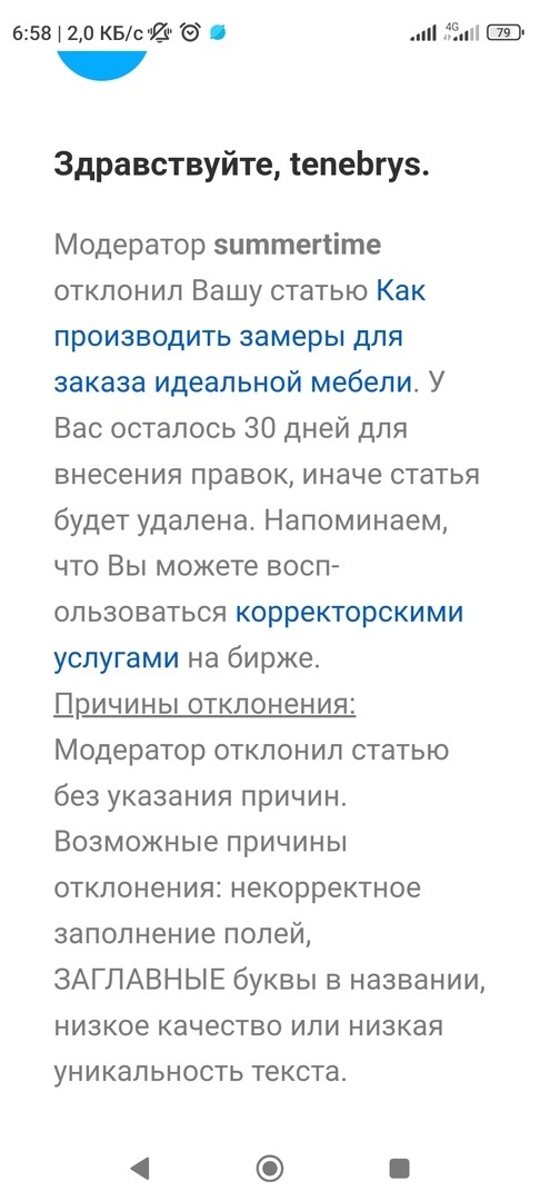 То я действительно допускала нелепые ошибки. И была в шоке. Ну каак? Кааак я это не отредактировала? Как сервисы не указали на ошибки? Бросила. Потом написала хорошую, дешёвую статью. Начали отклонять по нелепым причинам.