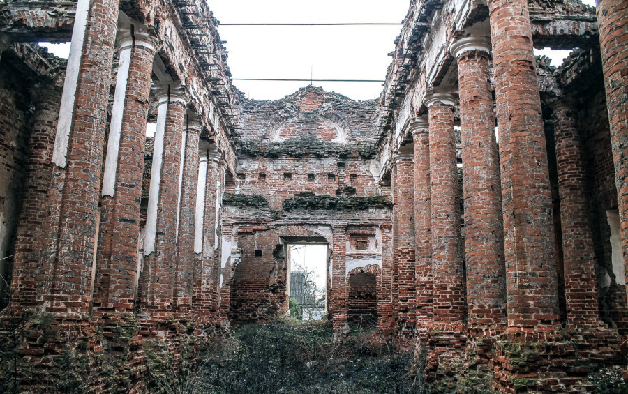 Подойдя поближе к этому великолепию мы увидели вырытую яму, глубиной, наверно, не менее трех метров, видимо что-то искали у фундамента костела.