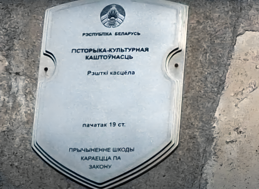 Мы подошли рассмотреть табличку этого храма. Оказывается это памятник историко-культурного наследия р. Беларусь и причинение вреда памятнику карается по закону.