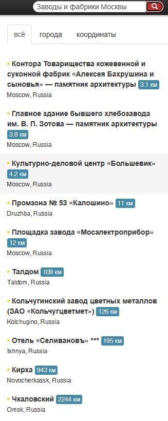 Ярослав - Хм... Я не знаю как Вы искали, у меня Викимапия выдаёт такую вот картинку (каждый красный квадратик - завод или фабрика. И это только центр Москвы. Квадратики кликабельны):
