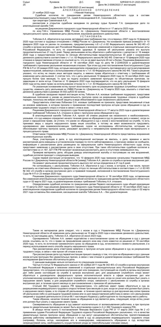 Спустя три года, подал иск об изменении даты увольнения, по которому первая инстанция отказала, ввиду истечения длительного срока обращения. Однако, решение суда было отменено в апеляционном порядке...
