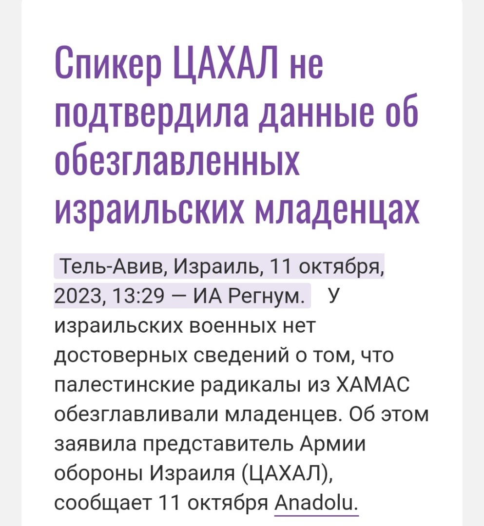 Израильские официальные лица заявляли что этих зверств ХАМАС не было. Информация есть в открытом доступе. Существуют многочисленные видео где 🇮🇱цахаловцы откровенничали о убийствах своих граждан. Геноцид палестинцев признали ООН и все страны кроме США и Израиля. Желчь и дезинформацию свою здесь не распространяйте, иначе будете забанены, а я буду дальше писать о том, что посчитаю нужным. Благо, многие зверства израильтян запечатлены на видео. Чтобы поддерживать истребление младенцев и женщин, это надо быть сумасшедшим без принципов, нет этому оправдания.