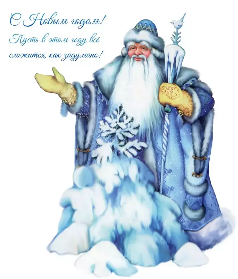 На старых открытках - поздравленьях с Новым годом - всегда было изображение ёлки, деда Мороза, Снегурочки. Перепутать было нельзя. Вот наш дед Мороз!