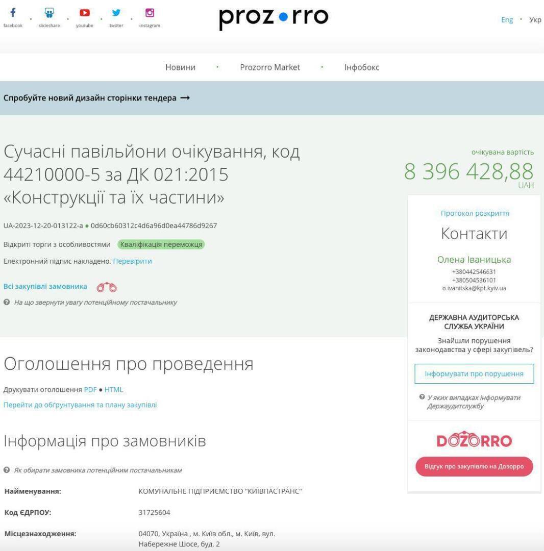 Соответствующий тендер на 8,37 млн грн ($218 тыс.) провело коммунальное предприятие «Киевпастранс».