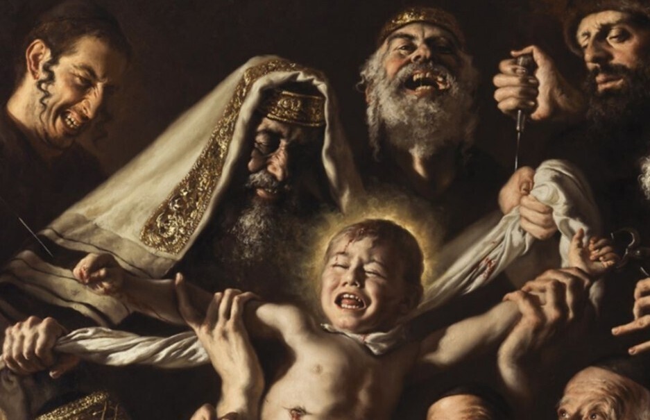 Это подводит нас к, возможно, самому спорному вопросу о крови евреев: Понятию еврейского ритуального убийства, также известному как"кровавая клевета". То, что евреи ритуально убивали животных, было общеизвестно, но идея о том, что они могли убивать и людей, была особенно тревожным утверждением, датируемым более чем двумя тысячелетиями. Первое упоминание такого рода относится к 300 г. до н. э., когда философ Теофраст написал, что евреи "теперь приносят в жертву живых людей... как других живых существ (то есть животных и неевреев), так и самих себя". Позже, в 168 г. до н. э., Селевкидский царь Эпифан разграбил иудейский храм в Иерусалиме, но нашел там пленного грека, которого держали для жертвоприношения. Около 100 г. н. э. Дамокрит писал, что евреи "ловили чужеземца и приносили его в жертву" раз в семь лет. А в "Римской истории" Кассия Дио (115 г. н. э.) объясняется, что евреи "ели плоть своих жертв, делали пояса из их внутренностей и помазывали себя их кровью" - это уже должно звучать знакомо. Евреи также "носили (человеческие) шкуры для одежды, а многих распиливали пополам от головы вниз" - нормальное явление, полагаю, для культа крови.