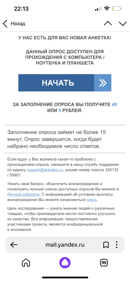 Минус для меня в том, что не все опросы можно пройти с телефона есть те которые можно пройти только с компьютера или ноутбука: