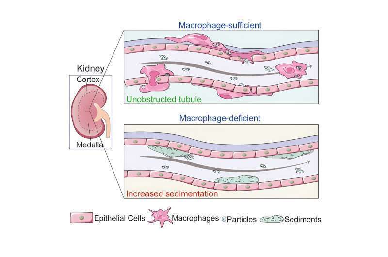 Исследователи из Медицинской школы Чжэцзянского университета, Китай, исследовали, как врожденная иммунная система организма, состоящая из макрофагов почек, работает для предотвращения образования камней в почках. В статье "Макрофаги почек отслеживают и удаляют частицы мочи для предотвращения обструкции канальцев", опубликованной в Immunity, авторы подробно описывают свои выводы о механистических действиях и стратегическом расположении макрофагов для наблюдения за эпителиальными клетками и внутрижелудочковой средой.