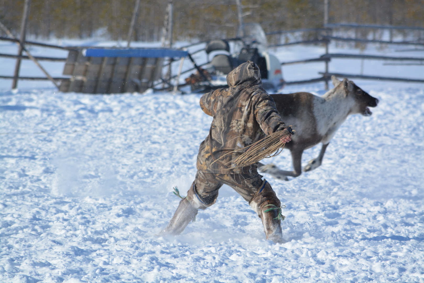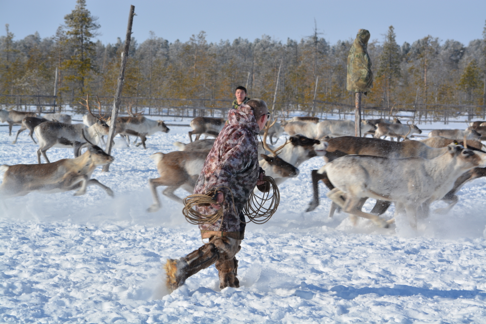 Этот чум с коралем большим служит как база сбора своих оленей. В этом случае соседей олени прибились к стаду и поэтому собрали всех своих что бы отловили соседи своих и увезли к себе.