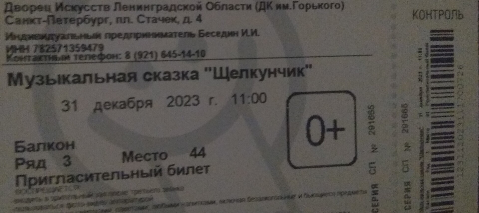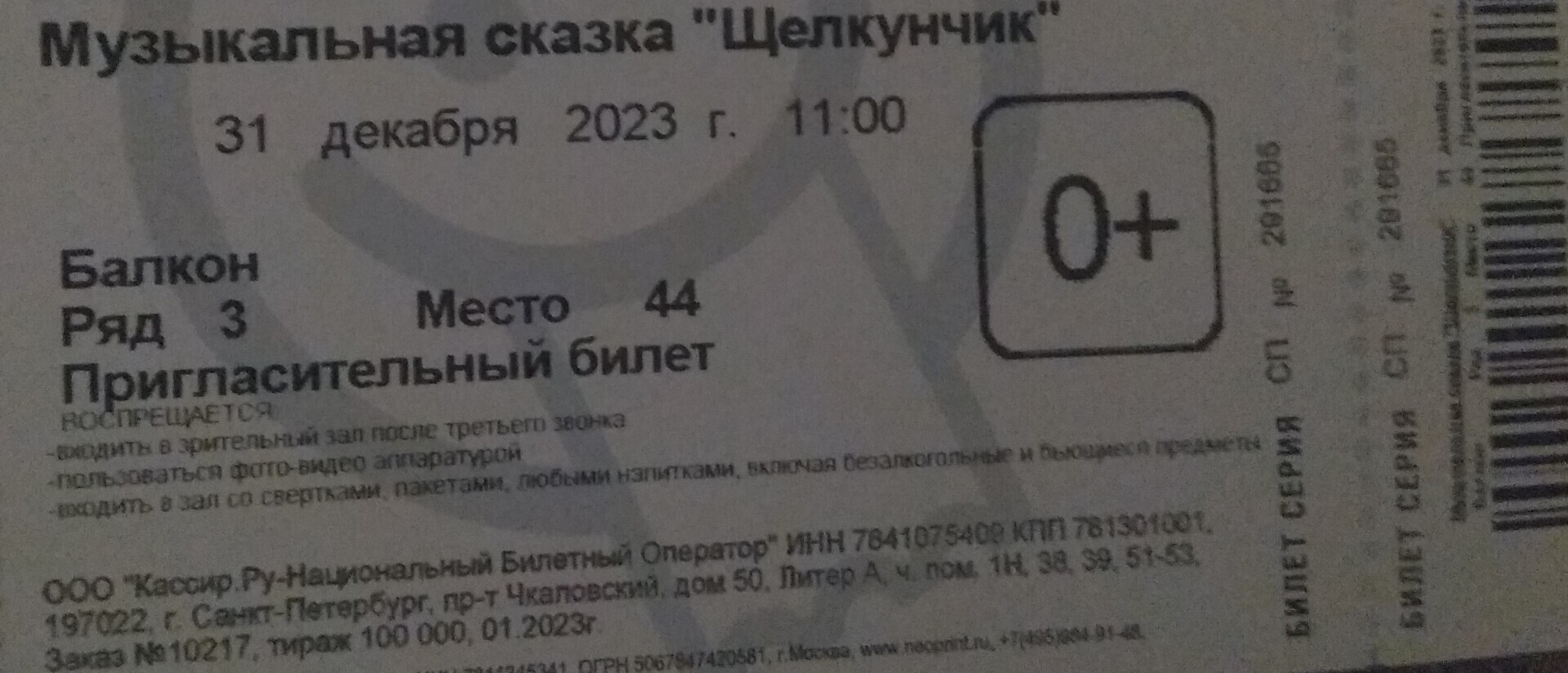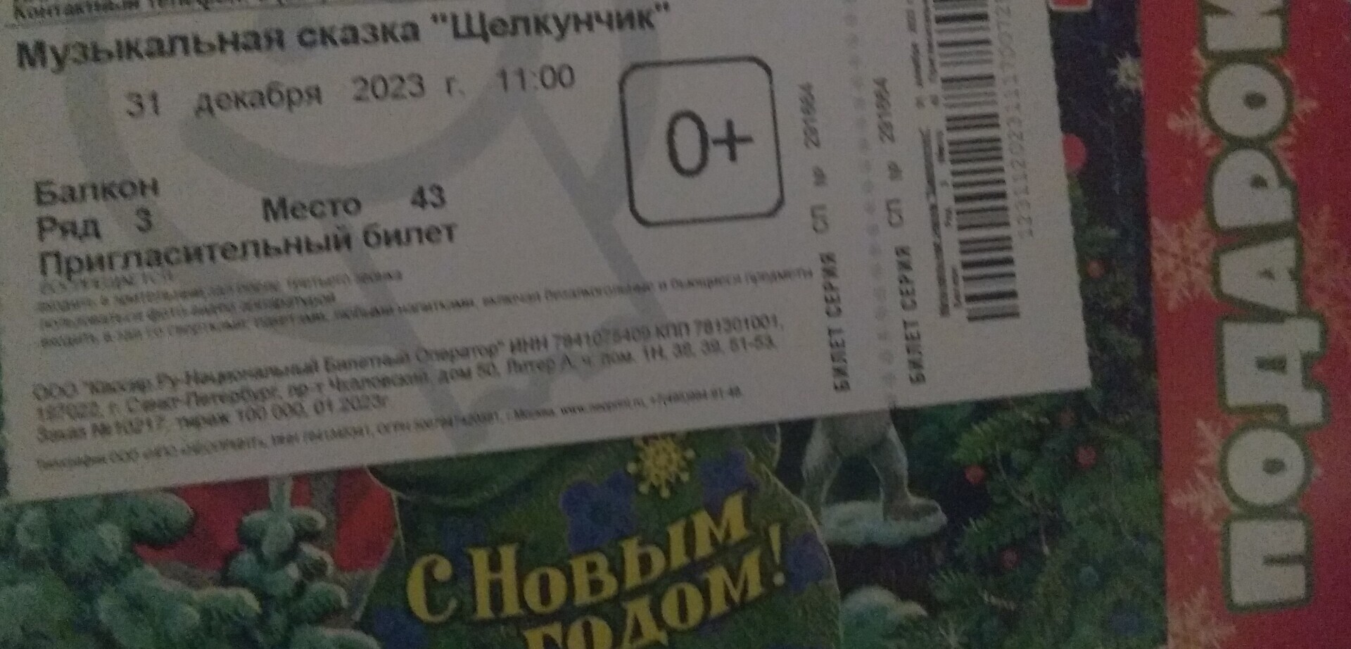 Этот билетик, конечно, пришёл неожиданно, а ушёл от нас очень приятно. Думаю, мама отведёт малыша, и он тоже будет радоваться.