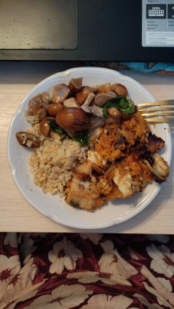 На обед кушаем углеводы в виде булгура, гречки на воде, пюре из цветной капусты или макарон из твердых сортов пшеницы. Далее белок- курогрудка, рыба тресковых пород, печень куриная, тунец в собственном соку, желудки куриные.