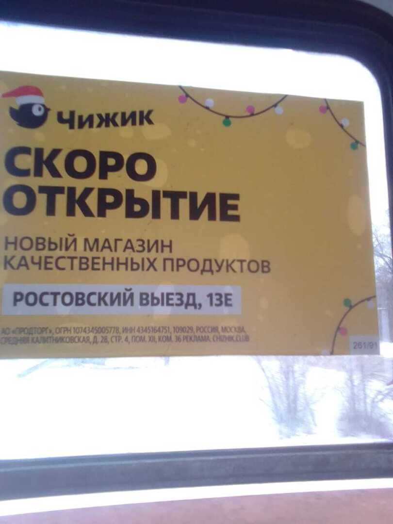 Вот и в Новочеркасске длительное время шла реклама, как в общественном транспорте, так и в других местах, открытия нового для города магазина "Чижик".