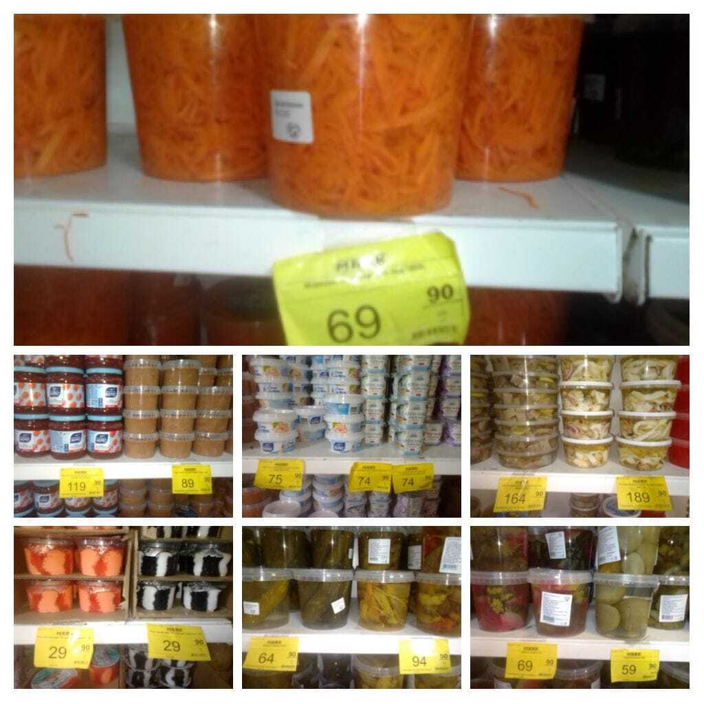 Ассортимент товара поражает воображение. Можно купить практически все, что нужно. Прилавки ломятся от колбасы и сосисок. Куча всякой бытовой химии. Стаканы, тарелки, сковородки, кастрюли...