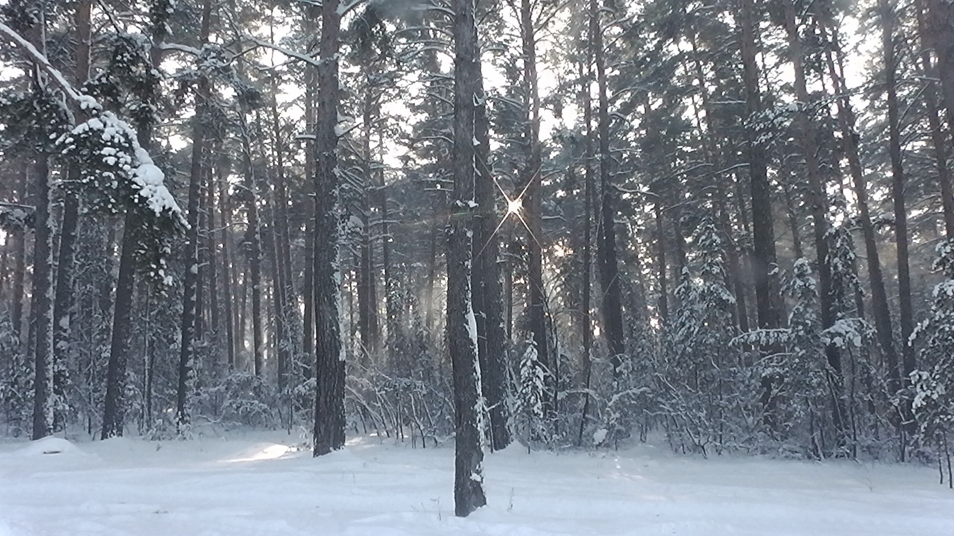 Но сейчас всё наладилось и встало на свои места: снег покрыл землю и можно топтать лыжню, кататься с горки, да и просто гулять по этому чудесному сказочному лесу...