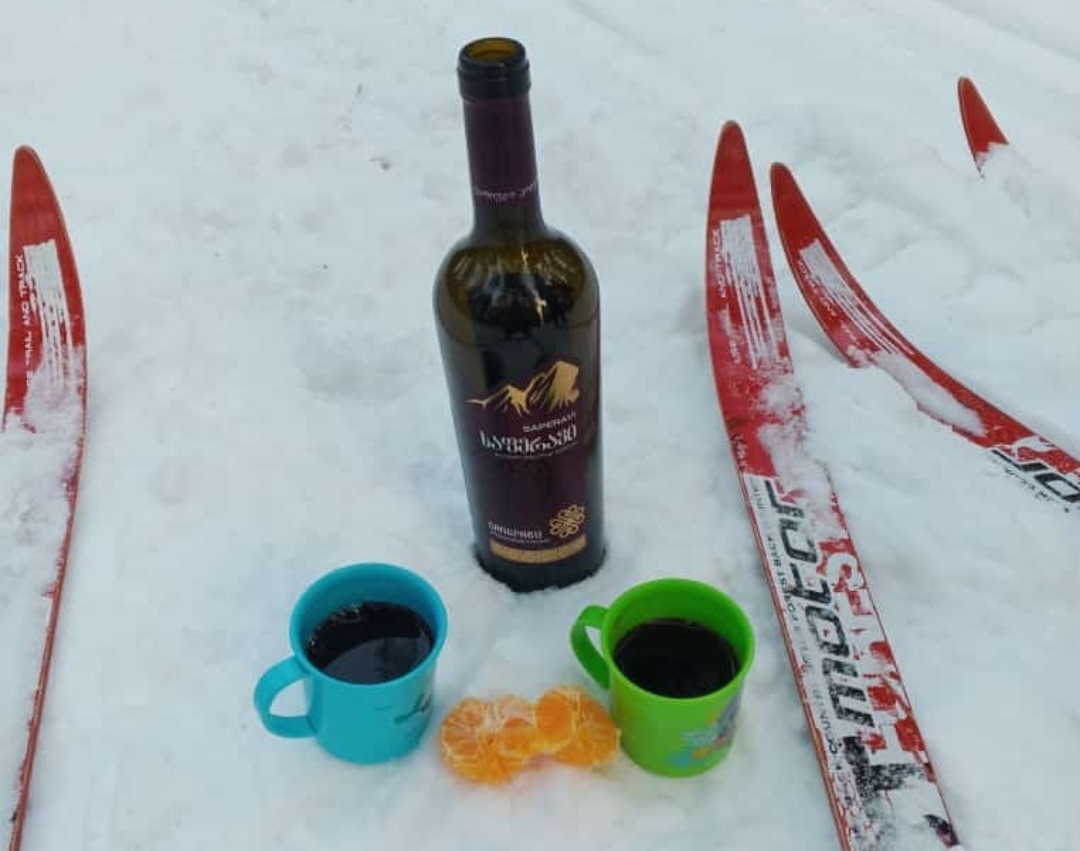 Красное винцо Саперави, любимый напиток жены брата. Элитным назвать сложно, но на морозе согреться пойдёт