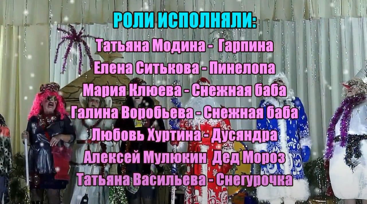 Каждый год после встречи Нового года работники Моисеевского Дома культуры и их театральный коллектив показывал для взрослой аудитории свои новогодние сказки. Предлагаю оценить одну из них - уникальный музыкальный спектакль под названием "Баба Яга не против". Организованный командой талантливых участников театрального коллектива "Улыбка", этот спектакль стал незабываемым шоу для любителей юмора.