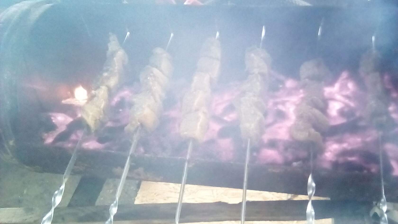 Пришло время шашлыков. Они у нас получились очень сочными и вкусными. Юра замариновал и ребрышек и шею.