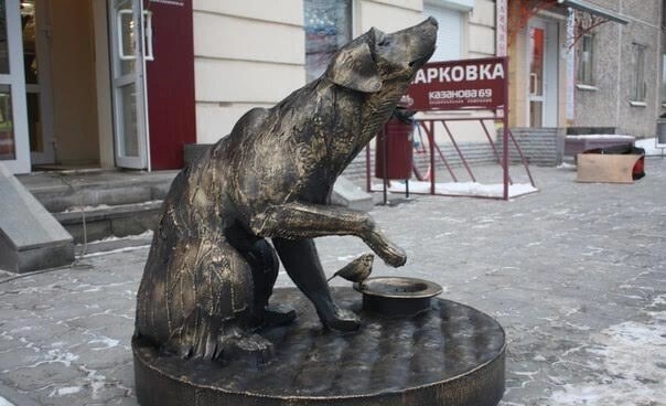Установленный возле здания Центрального банка Екатеринбурга, памятник бездомной собаке с протянутой лапой стал символом необходимости помощи и заботы о бездомных животных. Эта металлическая скульптура вызывает жалость у зрителей и стимулирует их сдать ненужные мелочи в прилагаемую копилку. Памятник создан из строительного мусора и демонстрирует важность украшения окружающей среды.
