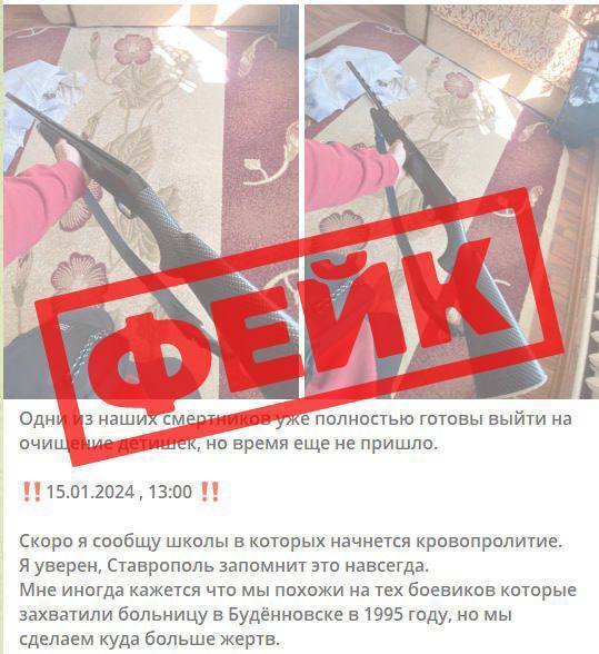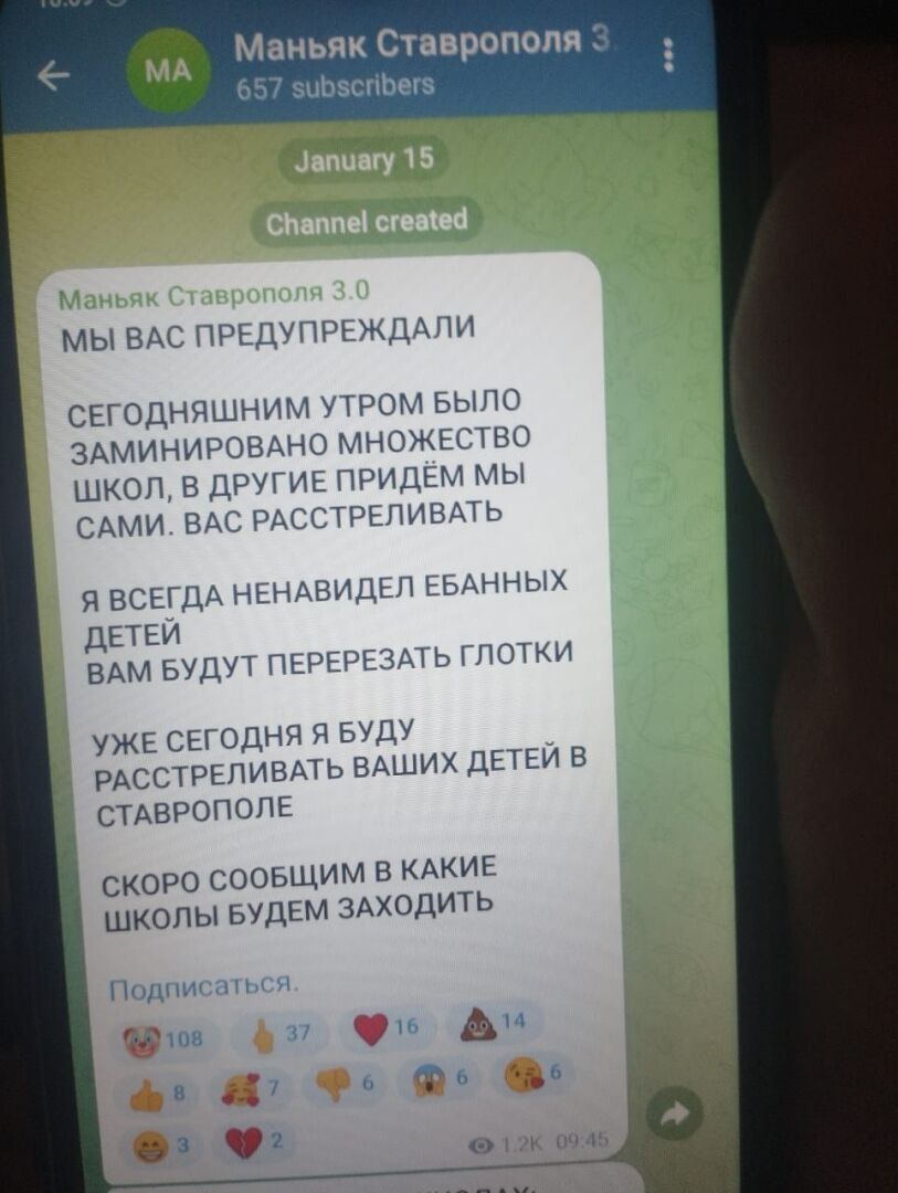 Дабы посеить панику,среди Ставропольцев(КавМинВод) сообщения о "кровавых планах" сопровождаются фотографиями школьных коридоров,видео на территории школ и садов,а так же аудио записанных неизвестным. Родители насторожились,кто-то отправил детей в школы,а кто-то решил оставить дома.